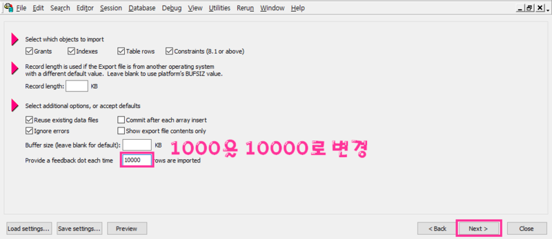... 버튼 클릭해서 Export한 DMP파일을 가져온다. > Next > 버튼 클릭