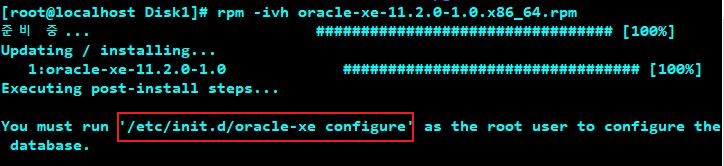 # rpm -ivh oracle-xe-11.2.0-1.0.x86_64.rpm 명령어로 패키지를 설치해줍니다.
