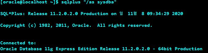 # sqlplus "/as sysdba" 명령어로 접속합니다.