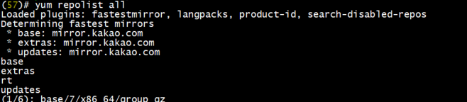 그리고, yum repolist all 명령을 실행 할 경우, 결과 내용 상단에 "Determining fastest mirrors" 블럭이 먼저 표시되는데,