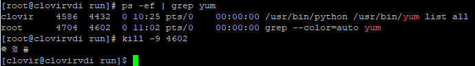 방법은 간단합니다. 현재 사용중인 프로세스를 제거하거나 실행중인 yum을 제거하면 됩니다.