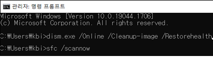 * 실행창(윈도우키+R) 또는 명령프롬프트창 모두 사용 가능함