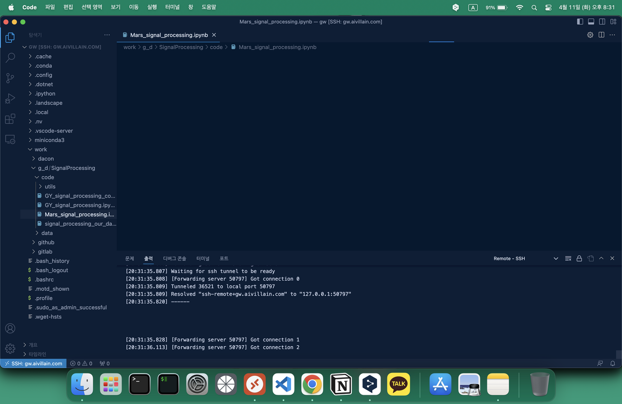 이런식으로 맥에서 내 집에있는 데스크톱 WSL에 SSH로 접속하여 VS Code 작업을 수행할 수 있게 설정하였다!