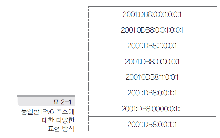 아래 표의 IPv6 주소들은 모두 동일한 것입니다.