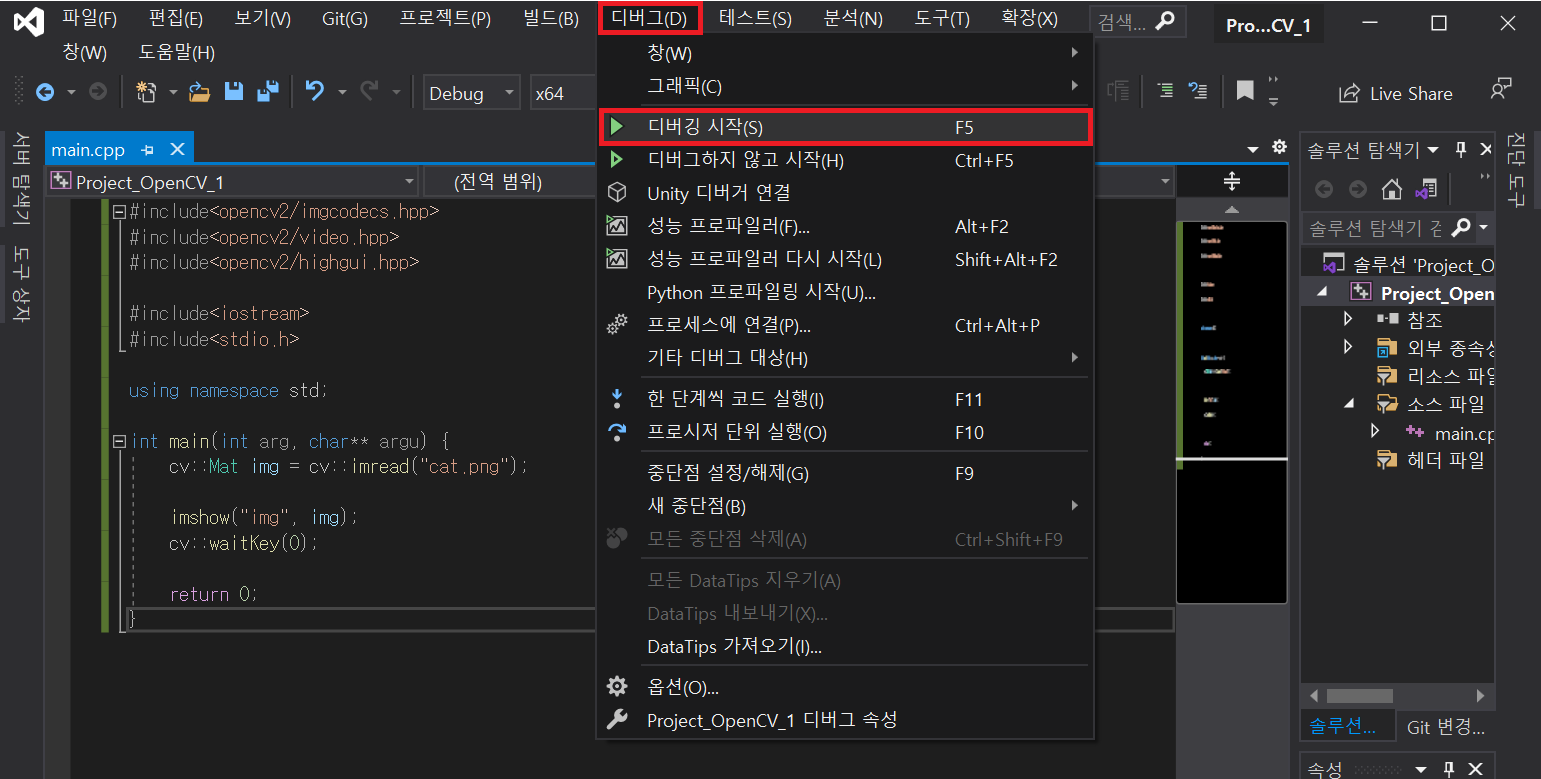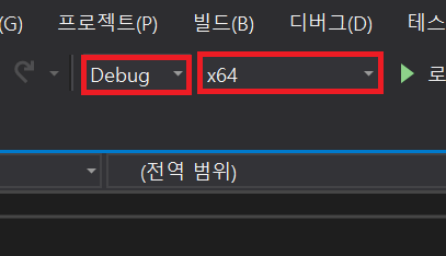x64로 되어 있는지, 디버그 모드인지 확인하자.