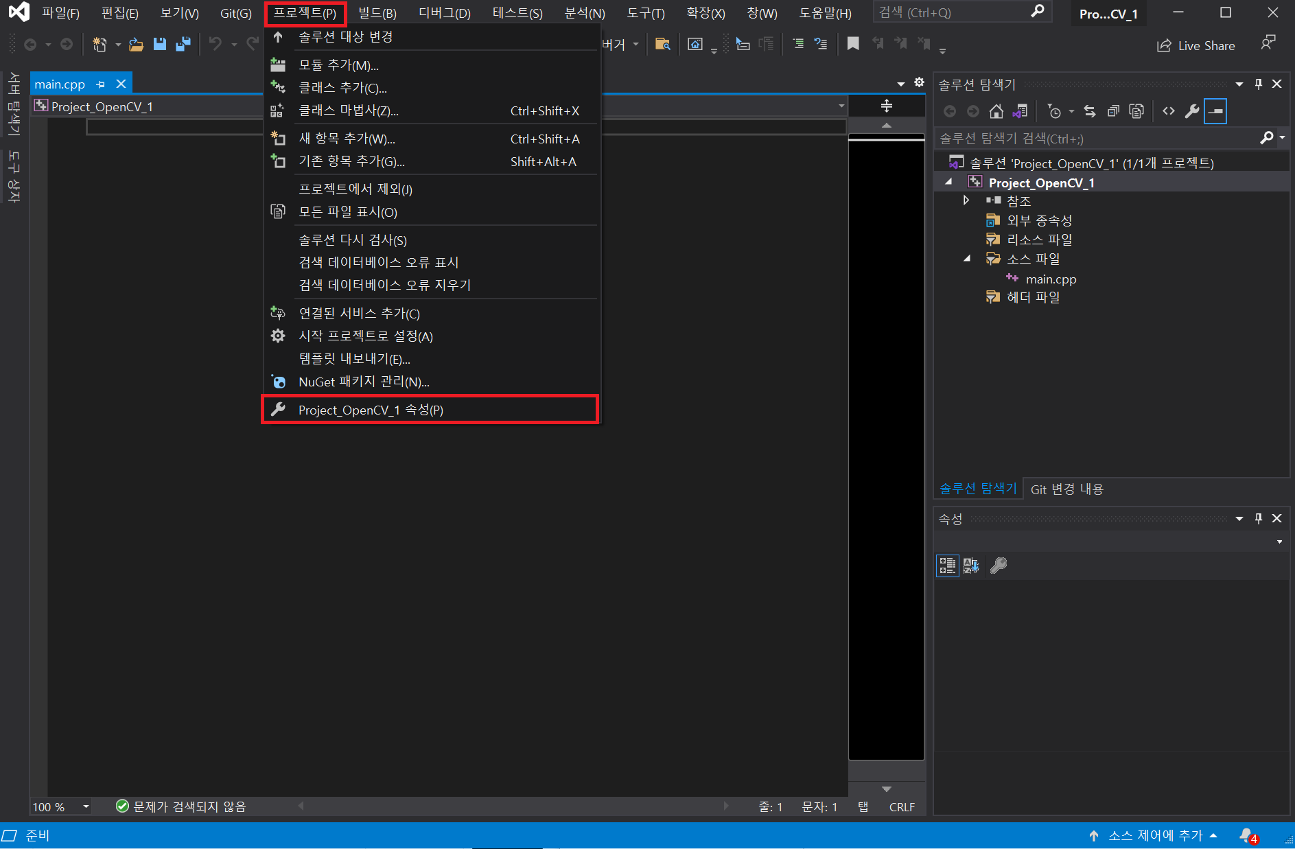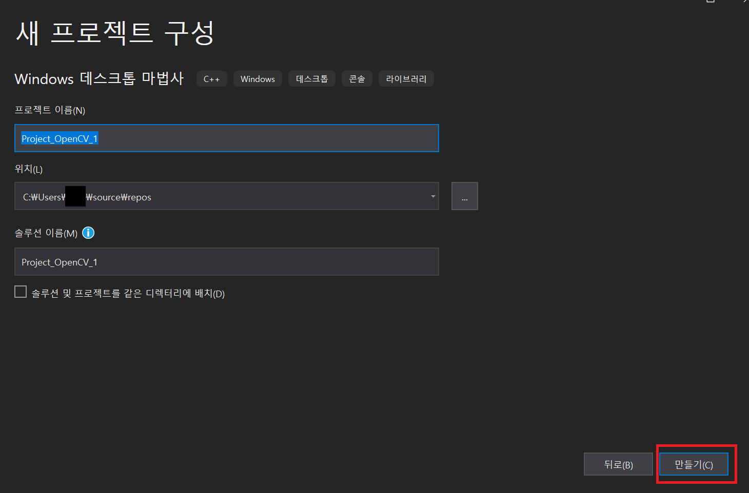 프로젝트 폴더는 일반적으로 C:\Users\<사용자명>\source\repos\Project_OpenCV_1\Project_OpenCV_1