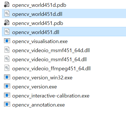 필자는 4.5.1 버전을 설치했으므로 opencv_world451d.lib가 나온것이다.