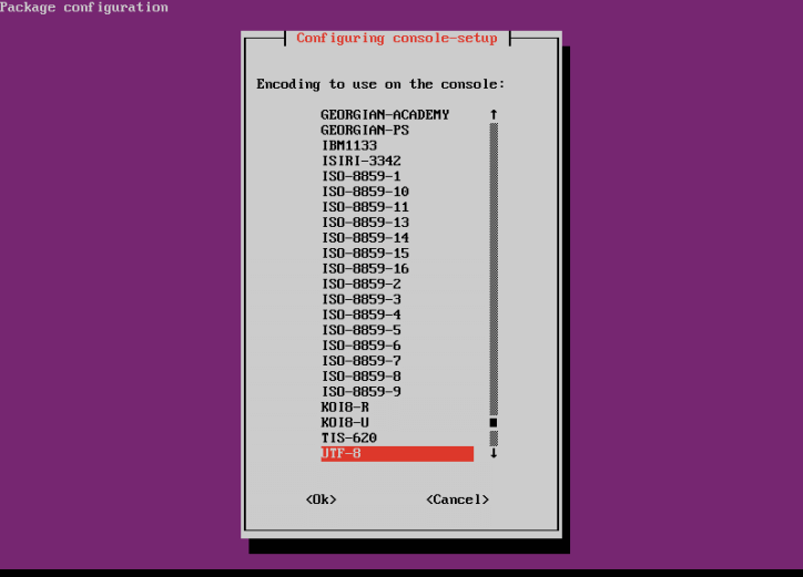 그런 다음 콘솔에서 사용할 인코딩을 선택하고 기본값을 그대로두고 [Enter]를 누르십시오.