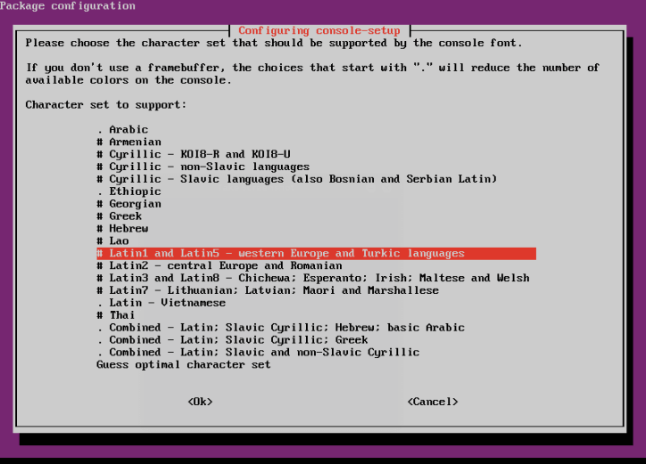다음으로 지원할 문자 집합을 선택하고 기본값을 그대로두고 [Enter]를 눌러 계속합니다.