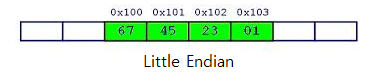 따라서 빅 엔디안(Big Endian)방식에서는 최상위 바이트인 0x01부터 작은 번지에 저장됩니다.