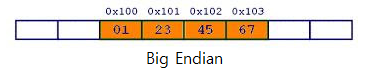0x100번지를 시작으로 0x01234567의 데이터를 저장한 모습입니다.