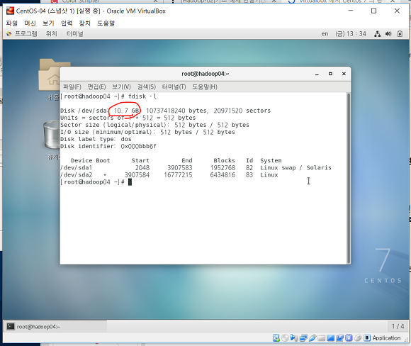 hadoop04 서버를 10GB 로 늘려 주겠습니다.