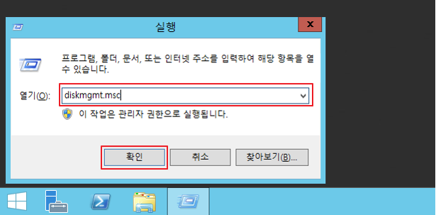 먼저 Windows 실행 창에서 diskmgmt.msc(디스크 관리)를 실행합니다.