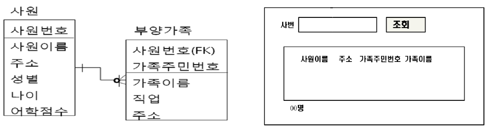 | DET(Data Element Type) | 7 | 사원번호, 조회버튼, 사원이름, 주소, 주민번호, 가족이름, 레코드 숫자(00명) |