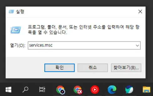 2. services.msc를 입력해서 서비스 관리자를 실행합니다.