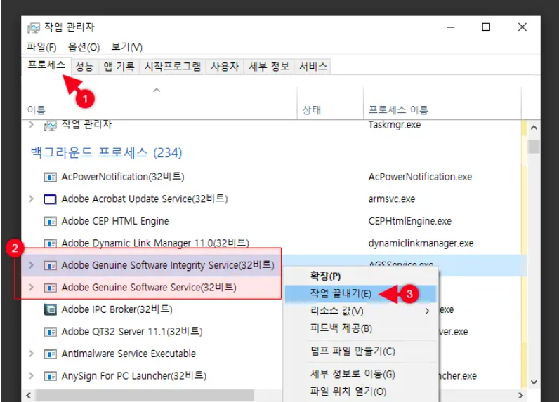 출처: 어도비 비정품 알림 없애는 방법 (Adobe Genuine Service 제거) - 익스트림 매뉴얼 (extrememanual.net)