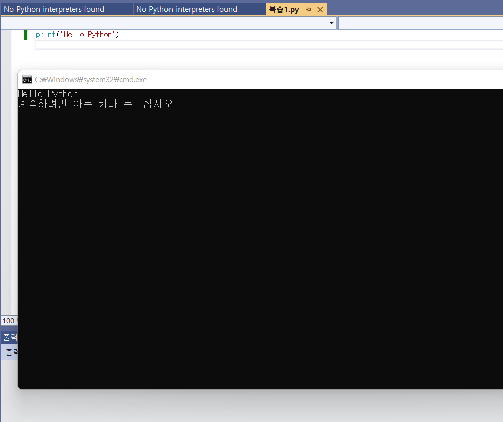9. 다시 Ctrl + F5 을 누르면 인터프리터가 잘 작동이 됩니다