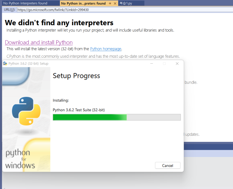 5. 보라색 글자인 Download and install Python 을 클릭하고