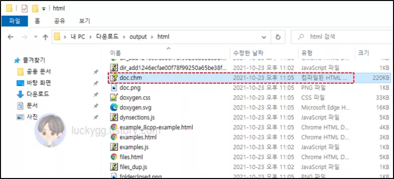 Doxygen에서 chm 파일 생성을 위한 설정 방법