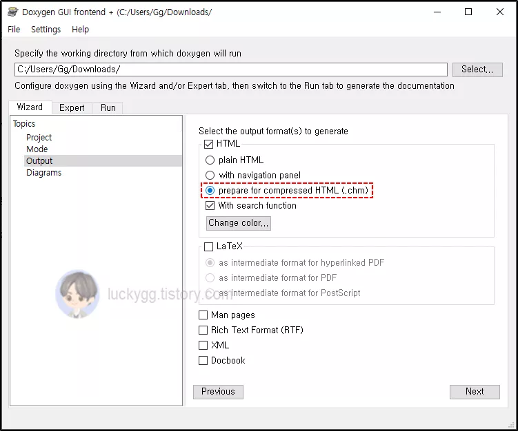Doxygen GUI에서 chm 생성하기