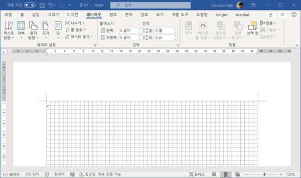 그런데 기본적으로는 가로선만 나타나고 세로선이 나타나지 않아서 모눈종이와 같은 효과를 적용할 수 없다.