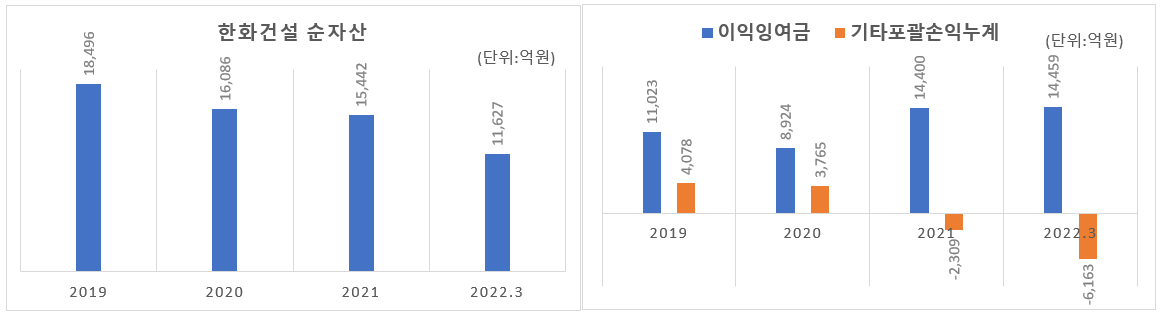 공사 중단 이후 오랜 시간이 흘렀음에도 불구하고 인프라공사에 미청구공사가 남아 있다는 건, 추가로 발생한 공사비만큼 공사계약금액을 올리는 협상이 아직 이루어지지 않았거나, 이라크 정부가 공사계약금액을 올려 달라는 한화건설의 요청을 받아들이지 않았기 때문이라고 추정할 수 있습니다. 그런데 한화건설이 계약해지를 통보했으니 인프라공사의 미청구공사는 손실로 귀결될 가능성이 매우 높아졌습니다.