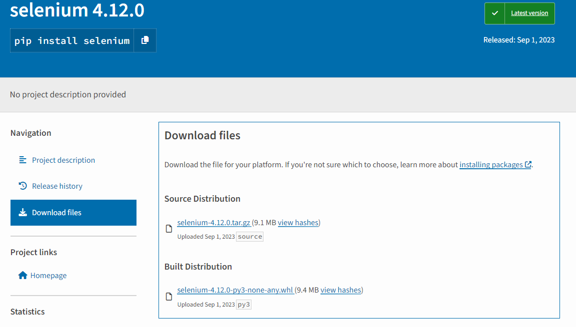 왼쪽에 Download files 클릭하면 tar 파일과 whl 파일을 다운로드 할 수 있다