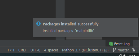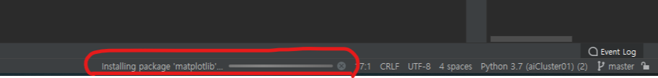 그럼 설치가 진행 되고, 파이참 오른쪽 아래를 보시면 설치중이라는 것을 확인하실 수 있습니다.