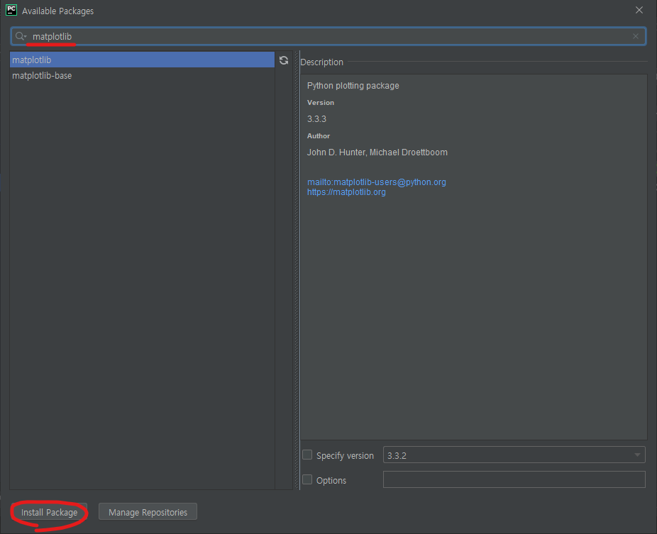 저는 제게 필요한 matplotlib를 검색했습니다.
