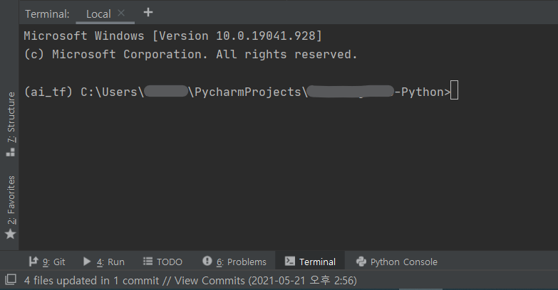 그러면 현재 지정된 가상환경 기반의 콘솔창이 나타납니다.