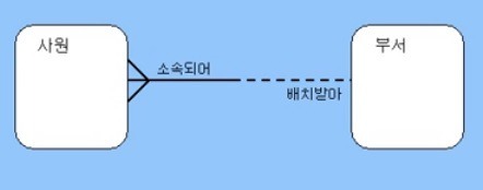 - 사원 입장에서는 부서가 필수적으로 배정받아야 한다.