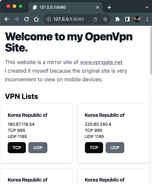 데이터가 나오는 걸로 봐서는 api/get-vpn 라우팅도 잘 작동되고 있는 거죠.