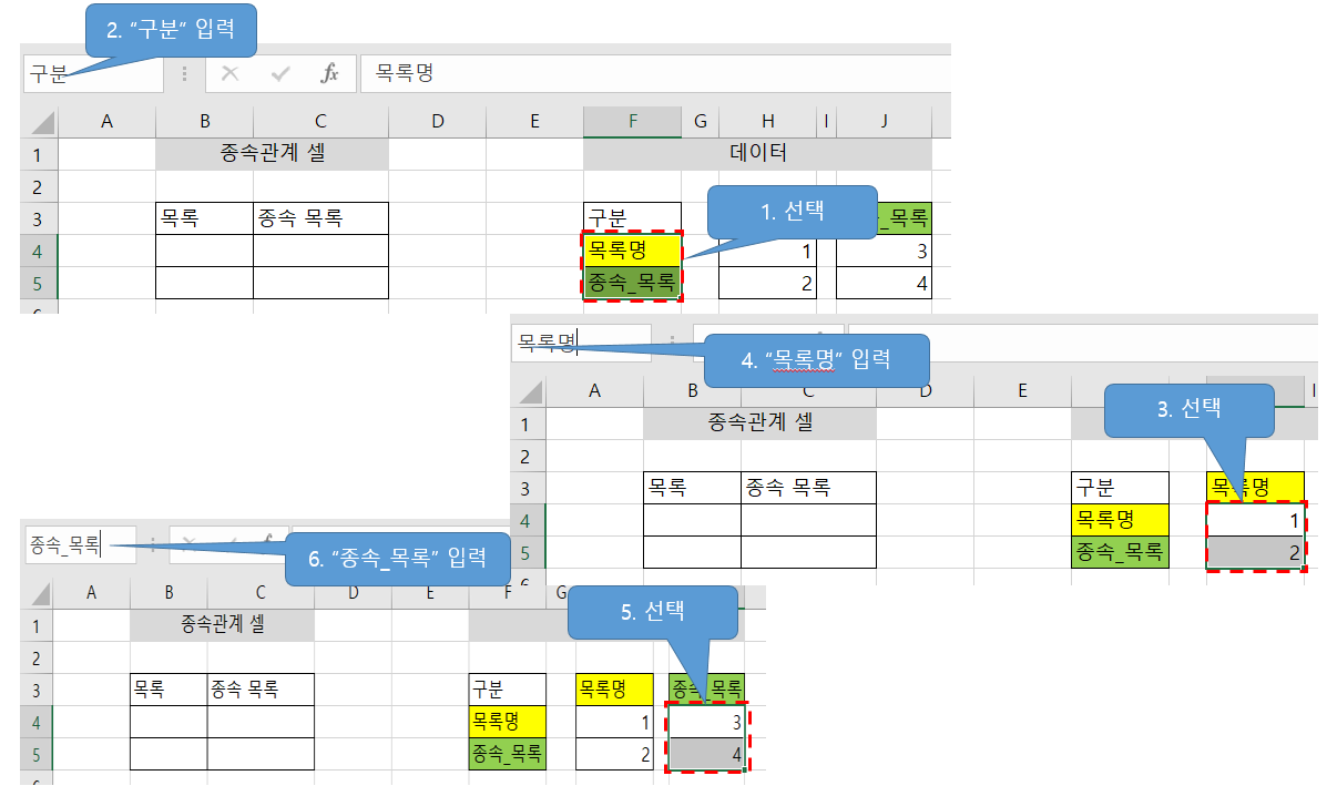 만약 조건에 상관없이 다중 종속 목록상자를 만들어야 한다면, 아래 고급 공식을 활용한 다중 종속 목록상자 만들기 게시글을 참고해보세요!