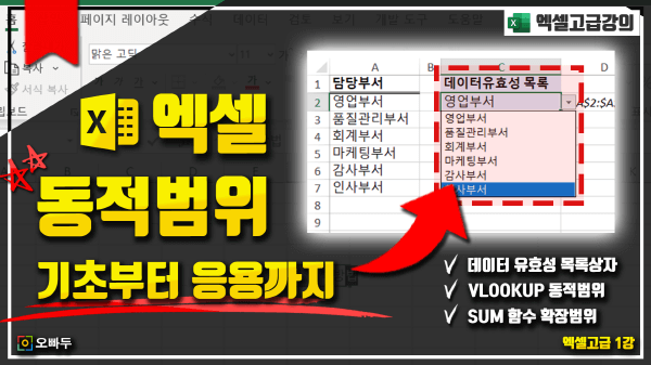 오빠두Tip:표 이외에도 동적범위를 사용하면 더욱 다양한 상황에 활용할 수 있습니다. 동적범위에 대한 자세한 설명은 아래 링크를 참조해주세요.