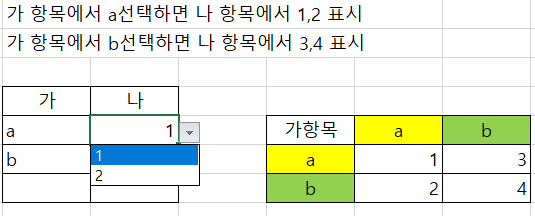 드롭다운에 들어갈 항목을 데이터 유효성검사에서 '목록'으로 제한합니다.