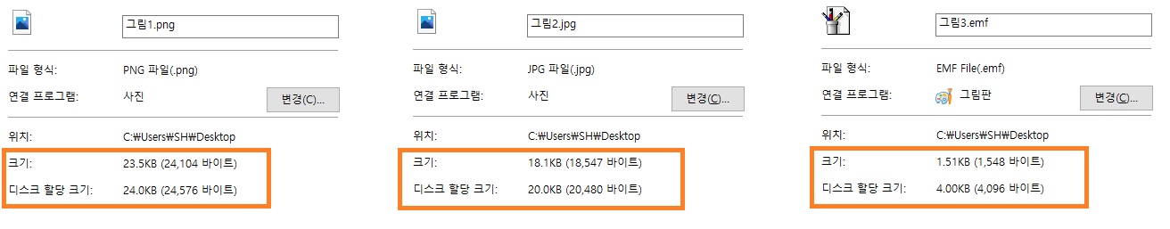 워드에서 그림 삽입을 통해 각 이미지를 비교해 보겠습니다.