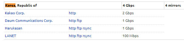 | Kakao | mirror.kakao.com | 가장 빠름. |