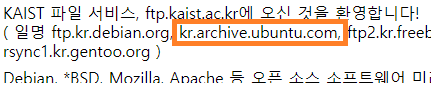 | Ubuntu (KOR 기본) | kr.archive.ubuntu.com | KAIST에서 제공 |