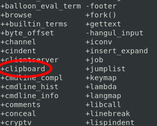 동그라미 쳐진 clipboard라는 것에 주목해보자 이는 현재 vim이 시스템 클립보드와 연결될 수 있는지의 여부를 보여준다.