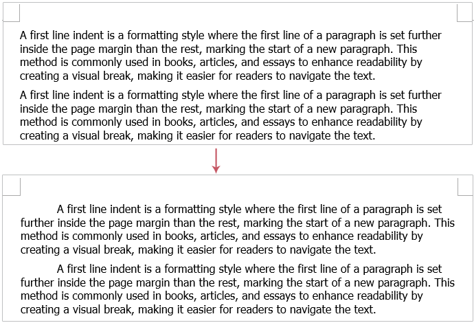 깔끔한 모양을 위해 이러한 들여쓰기를 제거하기 위해 이 섹션에서는 Microsoft Word에서 첫 번째 줄 들여쓰기를 제거하는 두 가지 방법을 설명합니다.