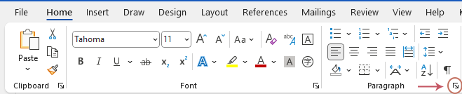 - 그런 다음 홈페이지 탭 및 절 그룹의 경우 오른쪽 하단에 있는 작은 화살표를 클릭하세요.