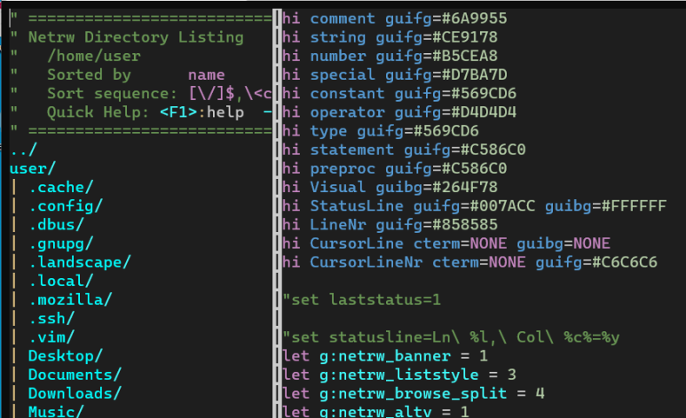 수평분할된 창에서 아래창을 보면 Netrw 의 현재 상태를 알 수 있는데