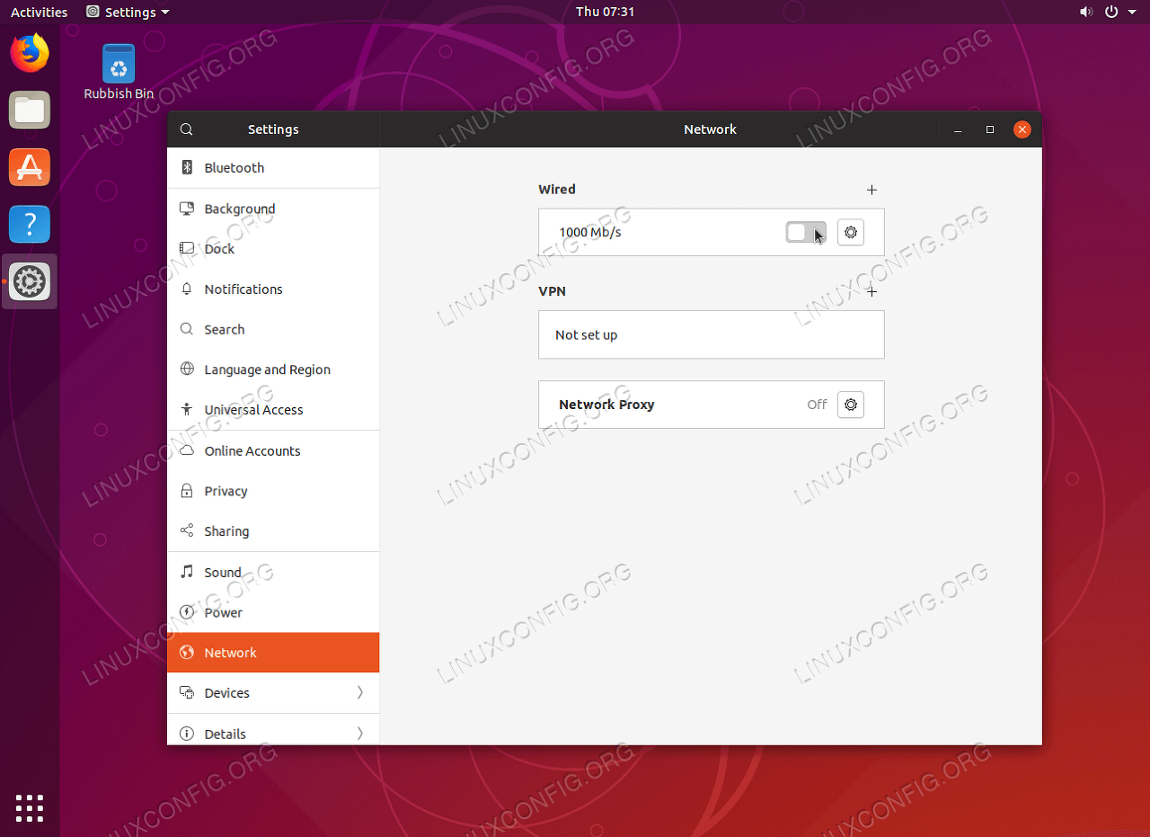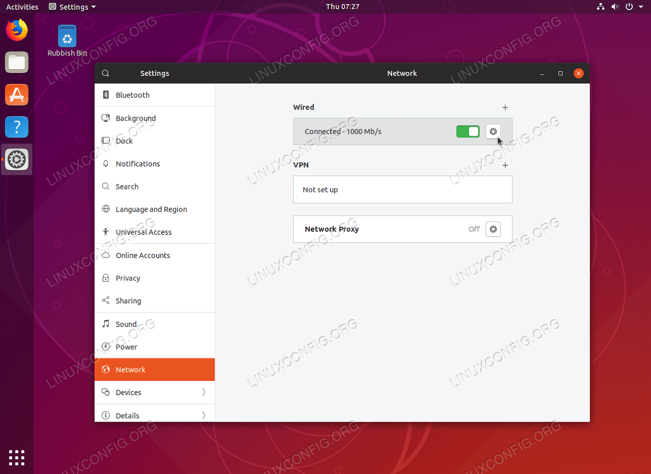 Open network settings Ubuntu Desktop