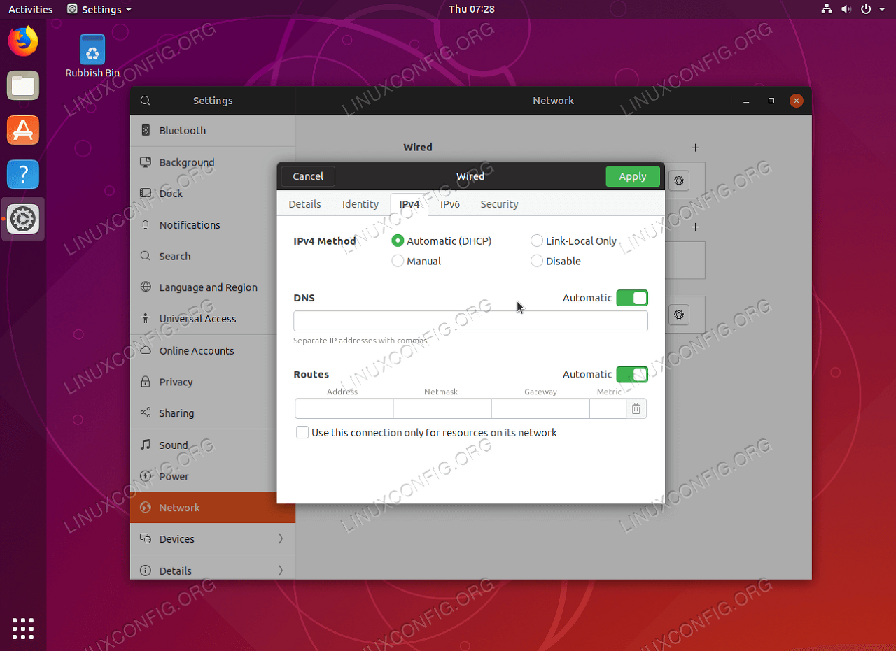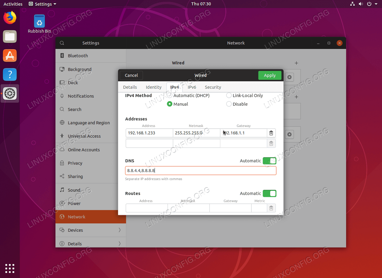 Static IPv4 IP address Ubuntu Desktop