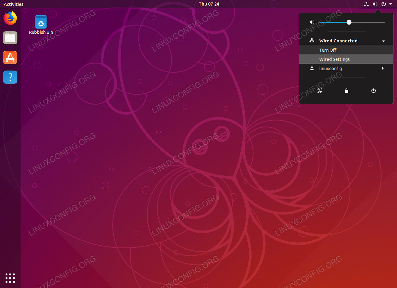The simplest approach on how to configure a static IP address on Ubuntu Desktop is via GNOME graphical user interface: