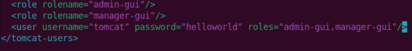 $ sudo nano /etc/tomcat9/tomcat-users.xml