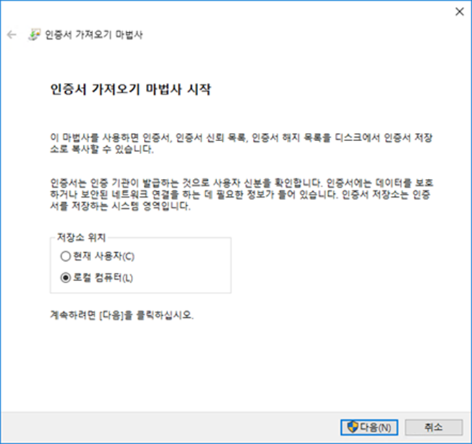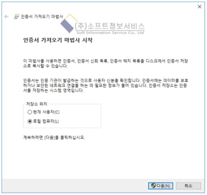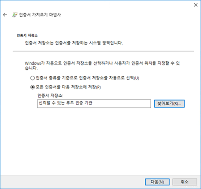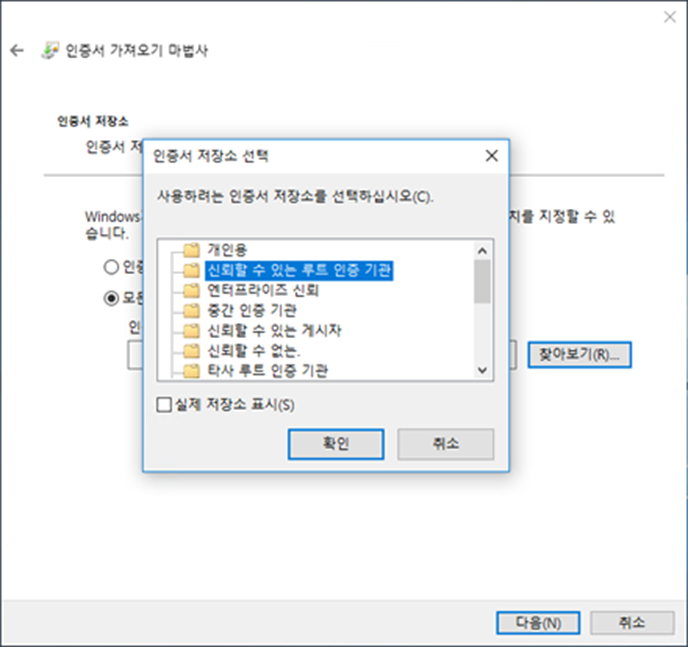 4. 3개의 인증서 파일 아래와 같이 설치합니다.