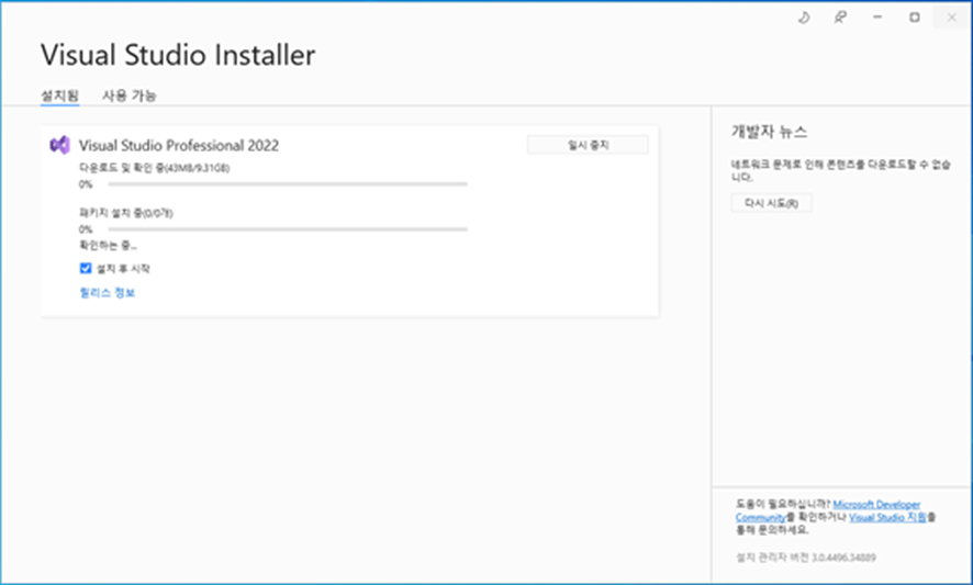 비주얼 스튜디오 프로 2022 인터넷 연결이 안되는 환경 폐쇄망에서 설치되는 가이드 안내드립니다.