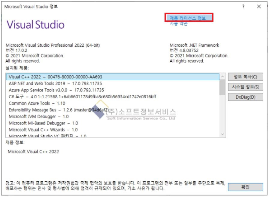 7. 제품 라이선스 정보를 선택하여 제품 라이선스 정보를 확인합니다.