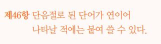 한글 맞춤법은 전체 51개 항 중 11개 항에서 띄어쓰기에 관한 규정을 두고 있습니다. 이번에는 한글 맞춤법의 띄어쓰기 규정이 어떤 내용인지 전반적으로 말씀드리려고 합니다.